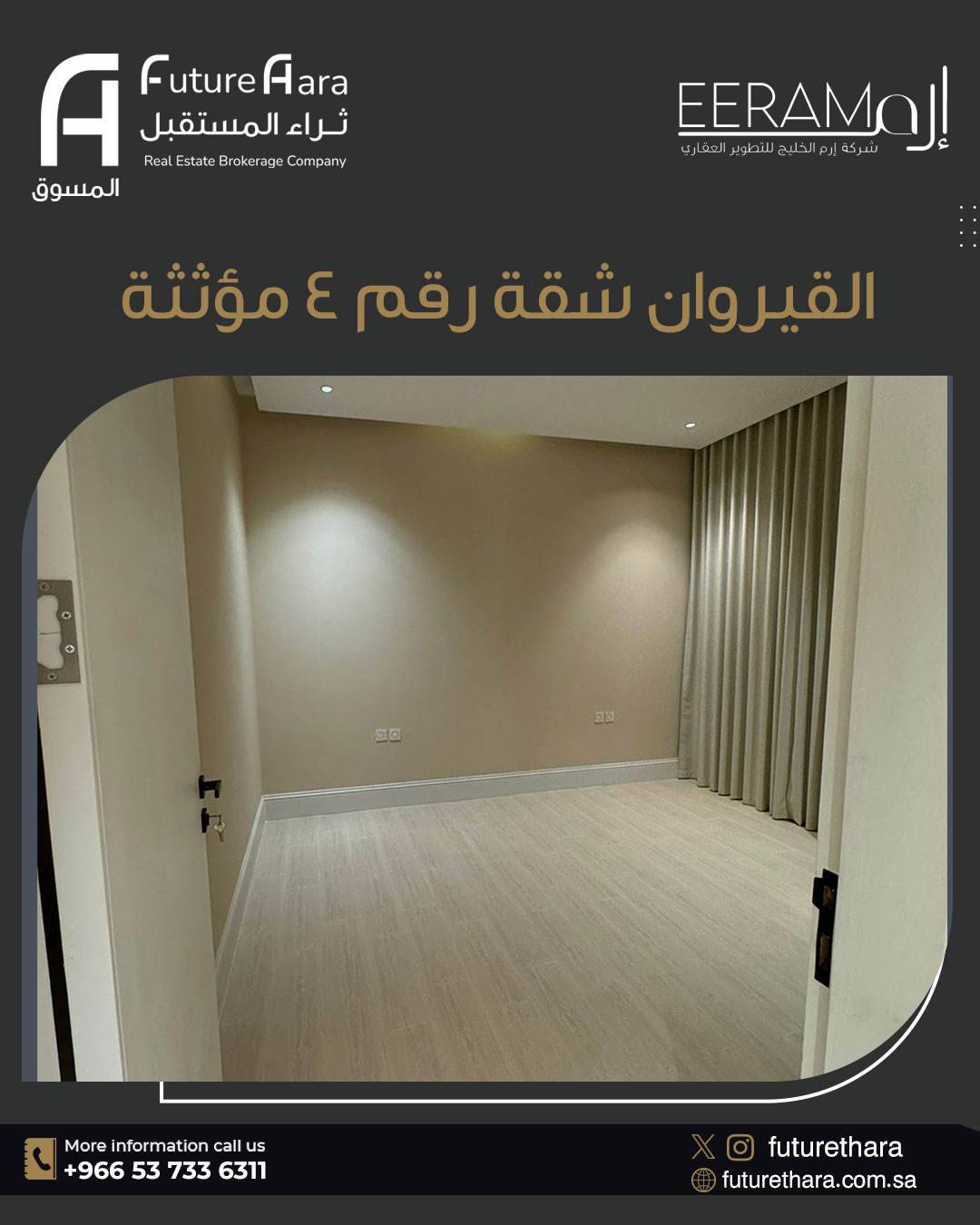 الدور الاول : موقف سيارة خاص مصعد مجلس 3غرف نوم (منها غرفة ماستر 1)ومطبخ…